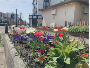 堀切ラッキー通り商店街のメンバーを主として、町会の方々ともいっしょに年2回の植替え、日々の水やり、雑草取り、土づくりなどの活動をされています。