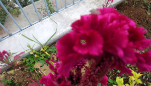 秋の花は豪華さを増しています。園児が育てたヒャクニチソウとケイトウの花が満開です。