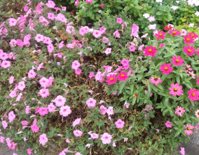 金町は再開発の街です。理科大通り近くに大型のスーパーが9月に開店し、買い物も便利になりました。その向かい側の通りも花々で秋を迎えていました。