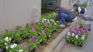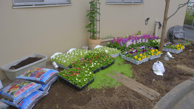 保育園には「アジサイ・ワタ・タチアオイ」などが次々に植えられて、花が増えています。 本日、午前中は「パンジー&ビオラ・ストック・デージー・スーパーアリッサム」の花壇デザインをして花鉢を置き、午後に花植えをして「アネモネ・ムスカリ・チューリップ」の球根も植える予定です。 春には「チューリップ」がいっぱい咲きます。楽しみにしていてくださいね。