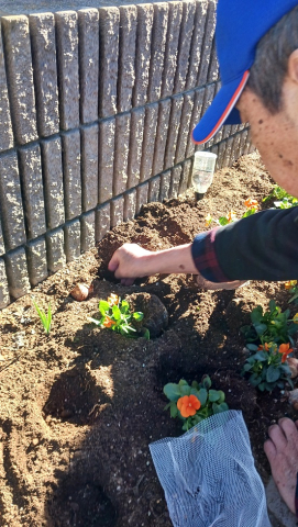 雲ひとつない快晴に恵まれるなか、8名で花植えを行いました。