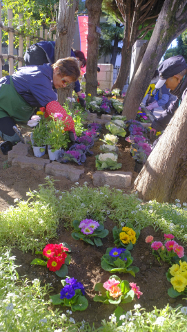 6種類「ハボタン・パンジー&ビオラ・キンセンカ・ラナンキュラス・プリムラジュリアン・球根(チューリップ)」を植えました。花植えで花壇がパッと変わりました。