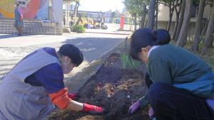さぁて、これからまた毎週花壇に来て、花の様子を見ながら作業を続けていきます。終了後には備え付けのノートに記録をして花壇の様子を共有しながら、花が咲くのを楽しんでいきます。