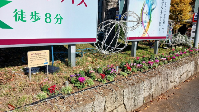 11月26日(水)13時から、花壇の植え替えをしました。 花壇の奥にはキンギョソウ、中央にネメシア、手前にはシクラメンを配置しています。 他にも花壇には、シロタエギクや可愛らしい白のアリッサム、 香りが豊かなローズマリーの花などが元気に咲いています。 金町駅北口は、イルミネーションとともに、冬を迎える花壇になりました。