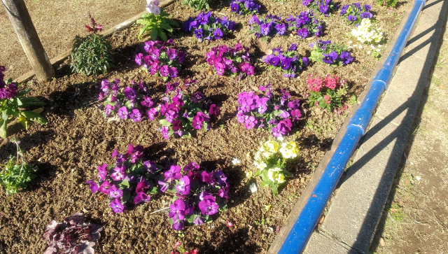渋江公園の冬花壇です。近くにはテニスコートやエコライフプラザの中に図書館もあります。花を見ながら散策にお出で下さい。