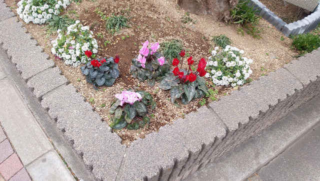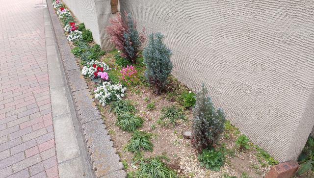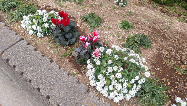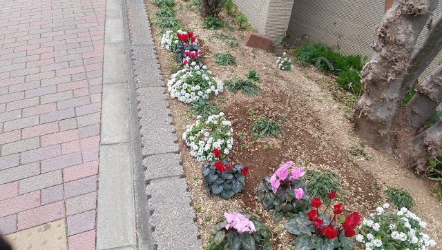 道なりに植栽された冬の花々