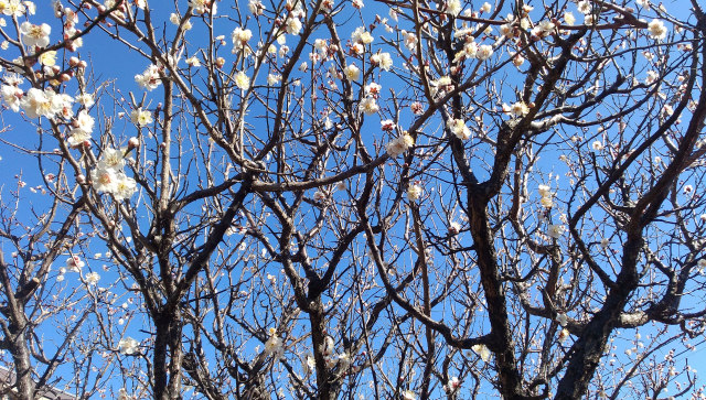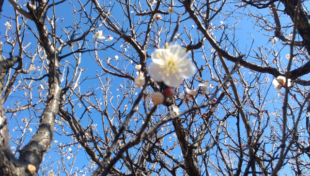 2月10日の空に、梅の花に、そしてフキノトウに春の香りが宿っています。