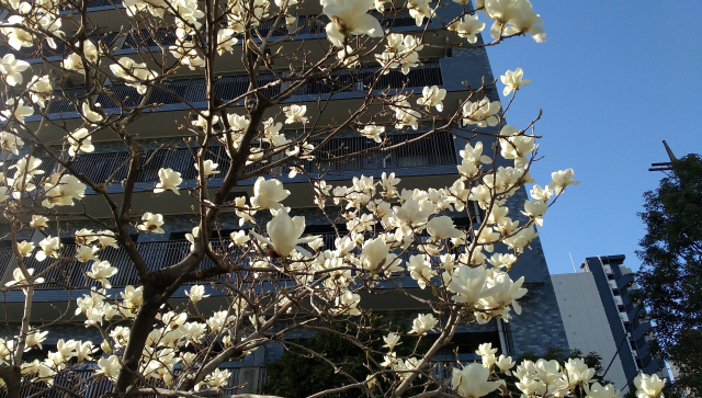 寒さのなかでも日ごとの確かな光は春です。河津桜や白木蓮が咲いています。