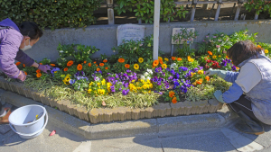 まだ寒いとはいえ、3月は着実に暖かくなってきているのでしょう。花壇の花は今を盛りと咲いています。 花抜きの予定を変更して、花壇整備としました。 学校側からの提供で、新しく3種類の花を植える準備していましたが、風も強く、明日の打ち合わせ後に植えることにしました。 今年は花壇コンクールに参加しようと、皆さんが意気込んでいます。