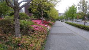 にいじゅくみらい公園に通じる理科大キャンパスの通りは、今目を見張る程の花ガーデンになっています。