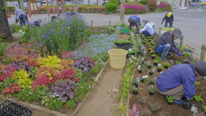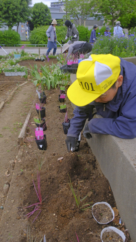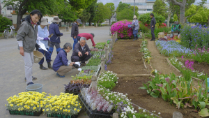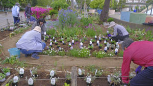 今回初めて植える花がいくつかあり、新鮮さを覚えました。咲くのか楽しみです。 花壇デザインした所を各メンバーが分担して植え始め、12種類の花苗を次々に植えていきました。賑やかになること間違いなしです。 宿根草のエリアがどんどん増えて、まだまだいっぱい咲いています。咲き終えたら、その場所に新しい花を植えていきます。