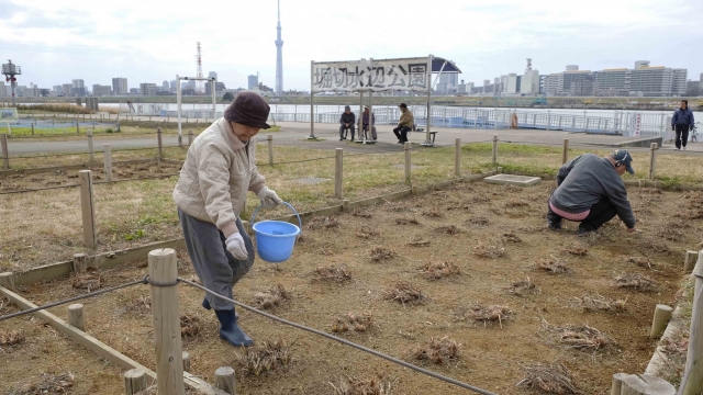 枯れた「花菖蒲」の葉を起こし、立てて束ねられたのが昨年末。 一束ずつ、草刈り機やハサミで刈り取った後、菖蒲田の草やコケを取り、肥料と水を撒いて作業終了。 例年より早く、大きめの「新芽」が出ていた。 さぁ、今年も咲くのを楽しみながら、育てていこう!
