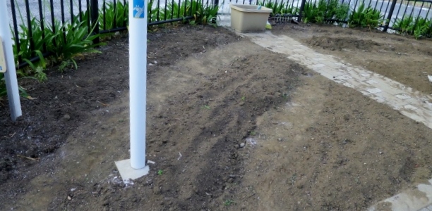 こちらの花壇にも石灰を入れました。昨日まで咲いていたコンテナ花壇にも。