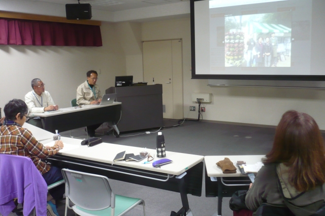 かつしか花いっぱいレポーターとしての、資質向上のための研修会を毎月実施しています。この研修会で学んだこを基にし、各レポーターがそれぞれの担当花壇を中心に取材に出向き、レポート報告をしています。11月の研修会は、エコライフプラザ研修室にて11月14日午後6時半~8時半まで実施しました。10月末に開催された緑化推進員会主催の施設見学会に参加したメンバーの、福島県塙町のダリア栽培についての報告もあり充実した研修会になりました。