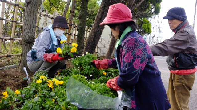 暖かい花抜きの日。 「パンジ―&ビオラ・キンセンカ・ノースポール」は移植し、これから咲く「マツバギク」も期待を込めて移植しました。 花壇2つを深く掘り返し、伸びた根を取り終える頃にはかなり汗をかきました。 1週間後の花植えに備えて「腐葉土・黒土」を撒き、整地後、「準備中」の看板を立てました。 楽しみにしていてください。