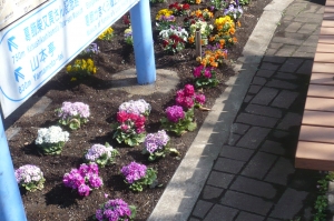 新柴又北口駅前に花壇広場があります。三寒四温のこの季節に、本物の春を迎える春待ち花壇があります。駅を降りて柴又巡りをする人々も、この花壇の中に設置されている案内板を見て、帝釈天を中心にした柴又巡りをお楽しみください。そして花壇のお花も堪能して下さい。