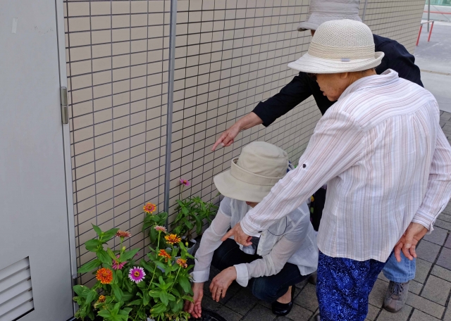 種から育てた「百日草」が花を付けたので、「ヒマワリ」を抜いた後の花壇に植えました。 もう一つ、種から育てた「変化朝顔」の鉢を見ながら、その変わった形の葉や花が話題になりました。 春には新たな「変化朝顔」の種を植えてみようかと思います。 夏の花といえば、授業で小学生が種から育てる「朝顔」、間違いなく咲くのはなぜでしょうか。 定例会は毎月第2(火)が主となり、第4(火)は参加できるなら・・・としました。