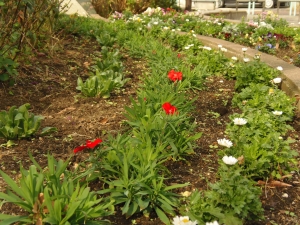 今月は、2週間前に植えた花々の間に降り注いださくらとけやきの落葉を取除く作業を7名で実施しました。 更に、せっかく植えた花壇に大きな靴の跡が数カ所あったのでそこを埋めたり、ダメージを受けた株をもう一度植えなおしたりしました。 3年生の花壇の花は元気に育っています。彼らの要望通りの名札作成を思い出してしまいました。(宿題だね!!)