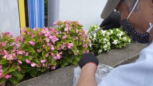 少し気温が下がり、時間をかけた剪定と花がら摘みを行いました。 「ペチュニア」や「アンゲロニア」の根元からは、もう脇芽がいっぱい出てきていました。その逞しさに驚きながら、観察眼を一層鋭くして見る、触る、枯葉取り、花がら摘みをしました。 最後に、水を撒き、剪定した花選びをして終了しました。 暑かった今夏、花への慈しみと共有ができました。