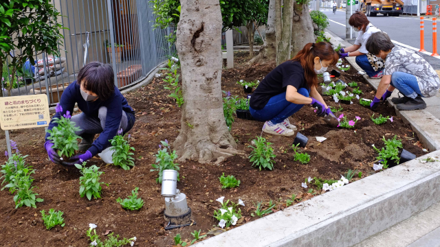 昨年植えた「ペチュニア」を再現しながら、「ブルーサルビア・マリーゴールド」を植えました。 園内には「ベゴニア・パンジー&ビオラ・シロタエギク」が咲いています。これからは「ラベンダー」や「朝顔」を植え足していきます。「プラタナス」などの落葉で堆肥も作りながら・・・。 花壇を作ってからは園児が水まきをしたり、「チューリップ」の花びらで色水遊びをしました。地域の方がよく声をかけてくれるようにもなりました。花とのさらなる一歩を模索中です。