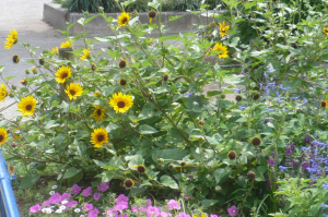 この日は、30度も超えている暑さの夏でした。緑道も照り返しの酷暑が、厳しかったです。そんな中でも、花壇には「美」が見えました。