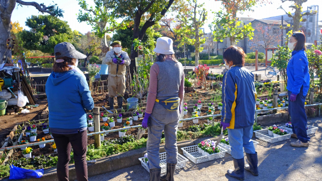 途中、散歩に来た人、たまたま通りかかった人、そして、いつものように公園に遊びに来た親子も、花植えを見ていました。