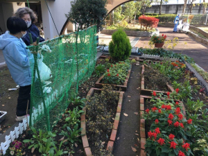 12月9日に朝顔の支柱撤去を終え、本日21日(火)10時より春用花壇準備の為、引抜き作業を10時よりスタート。長く楽しませてくれた花達に感謝の気持ちを伝えながら、一本、一本と別れを惜しむように愛を込めて。そして、土壌を耕しながら肥料・害虫剤を加え、整地。この日はいつもより暖かく、寒いと思って厚着をした体がいつの間に汗ばんでいました。すっかりきれいになった花壇の周りには、今か今かとデビューを待ち望んでいます種から育てたたくさんのポット苗がスタンバイ。