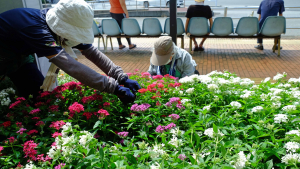 猛暑の中、花がら摘みと水撒きをしました。 期待した通り「マリーゴールド」が咲いてきました。 「ペンタス」には褒め言葉で、「よくぞ、これほどに!」と、称えたいほどです。 「オキシペタラムに種が?」と思ったら、タンポポのような綿毛が付いた種を既に収穫済みとのことでした。ホッ。