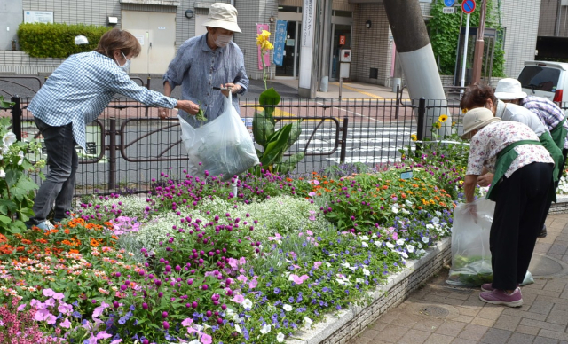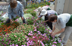 2023年(令和5年)7月14日(金)午後1時30分にペンギン公園花壇わきに集合した。連日30℃超えする暑さの中、最初の花柄摘みを行った。区から会長賞の公文書を頂き、参加者全員に田中代表から回覧し、受賞の歓びをかみしめていた。6月7日の植え付け日から約1か月を経過していた。花全体が地表を覆い隠すほど、各花の開花が進んでいた。8月10日に表彰式が行われる予定だ。