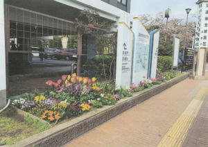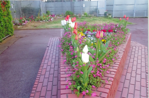花壇のデザインテーマを「春のお花」として、花壇を作られています。
