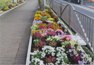 花の好きな有志で、配色にこだわった植付けを行っており、団地の方々の癒しになるような活動をされています。