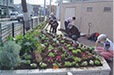 花壇のデザインテーマを「元気いっぱいの発信場所」として、花壇を作られています。