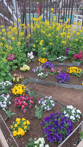 秋に植えたチューリップや草花が花壇を賑やかにし始めました。投稿者 砂原いきいき会撮影日2017年4月5日撮影場所