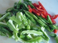 ベランダ菜園も、この夏の楽しみでした。あの暑い夏もこの季節になれば懐かしく思われます。今は夕方になるとの虫の音も静かに聞こえてくる季節になりました。みどりのカーテンとしての「ゴーヤ・ツルインゲン」と「赤ピーマン」を主な材料として夕餉の一品にしてみました。1品は「夏野菜のとろみ炒めウインナ添え」。2品めは、「ゴーヤと若芽の酢のもの」です。