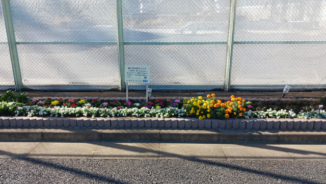 「花いっぱい住みよい街づくり」をスローガンに年間4回四季の花を植替え、日常の清掃、水やり、除草等の花壇管理活動を行っています。