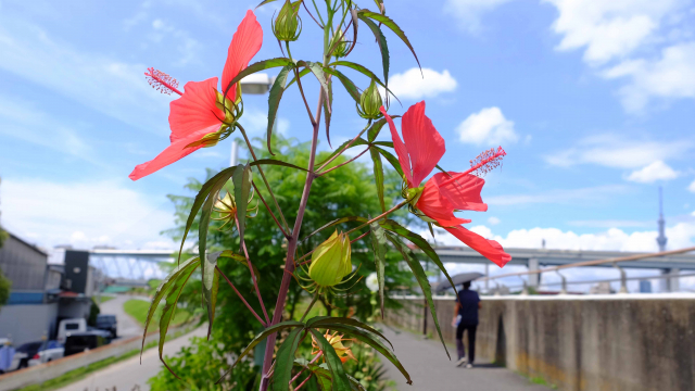 スカイツリーを見ながら、四季おりおりの花を見ながら、生命感あふれる散歩コースをどうぞ!